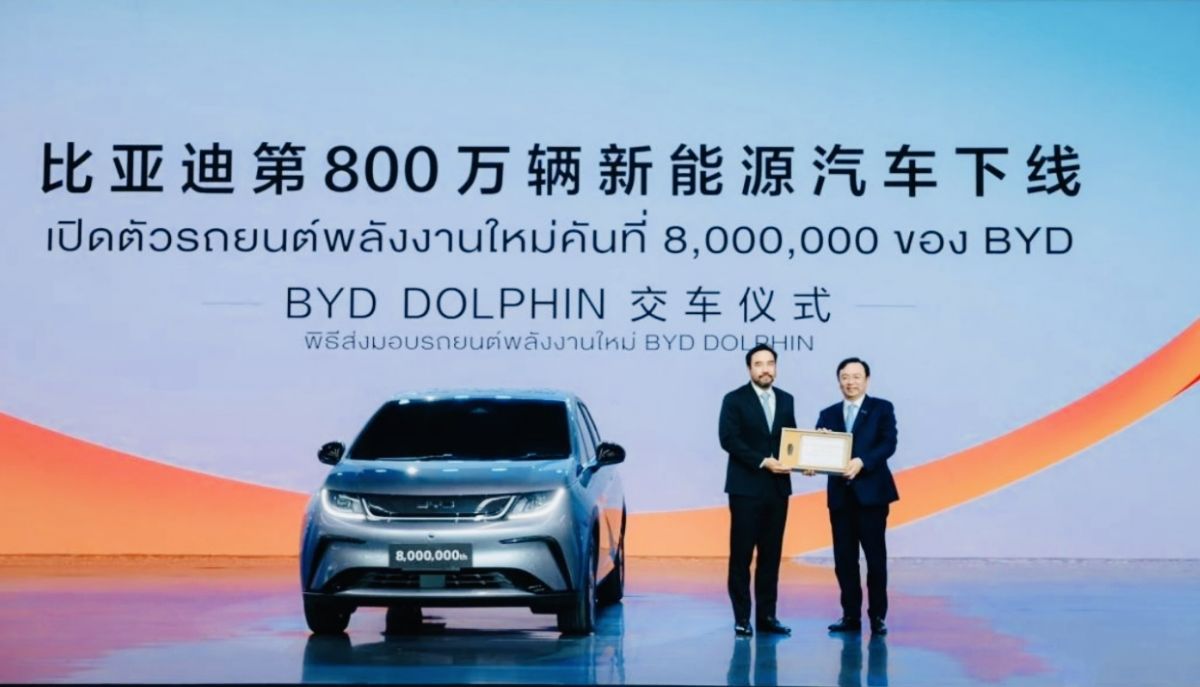 值此之際,比亞迪向泰國王室贊助的皇太后基金會交付了上述工廠生產的第800萬輛新能源汽車-比亞迪海豚電動車,體現了比亞迪對創新和可持續交通的承諾。