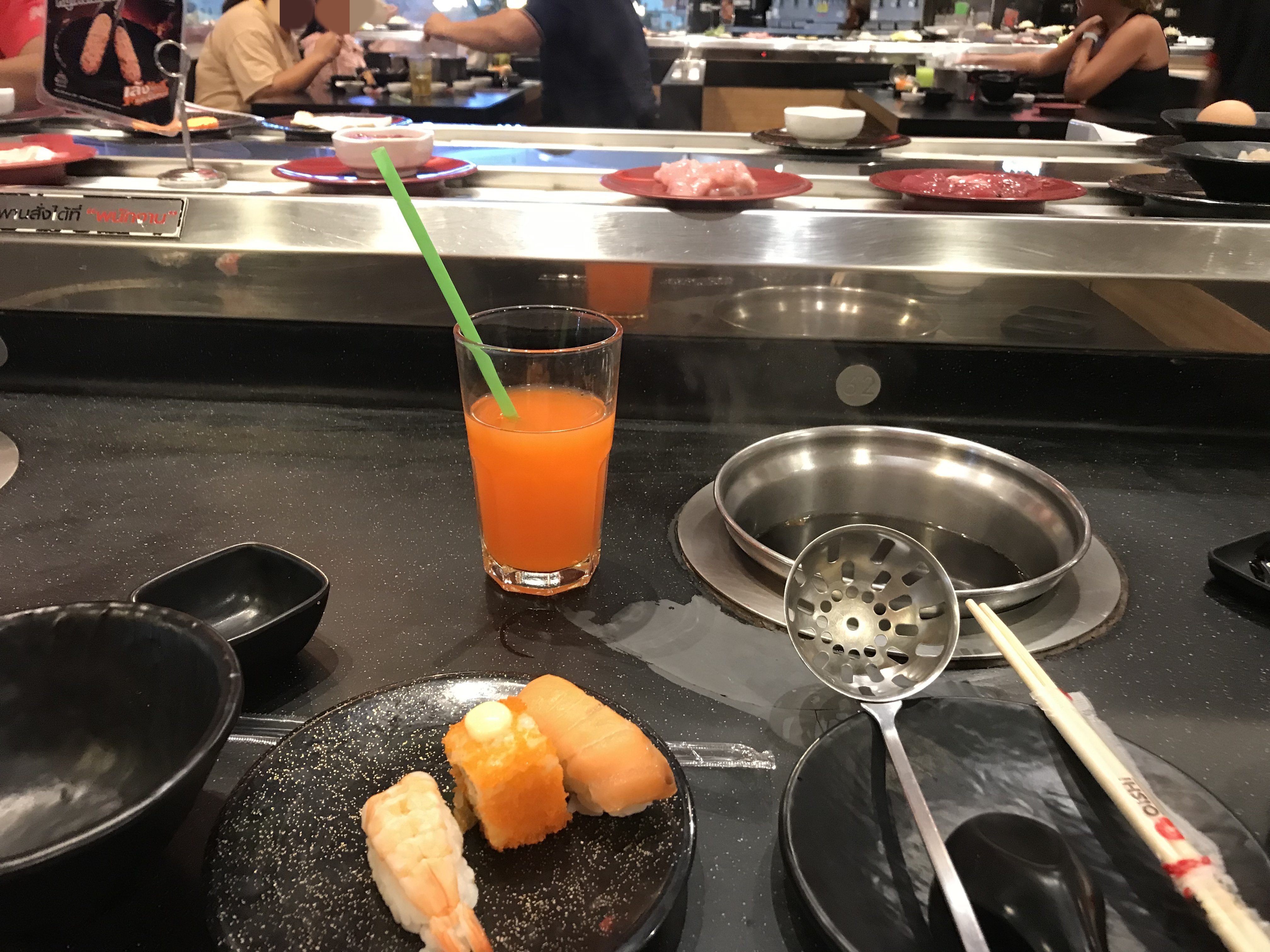 我很喜歡吃迴轉壽司,覺得很過癮!我以前還只會吃迴轉帶上的,覺得不知有什麼轉出來很是驚喜。