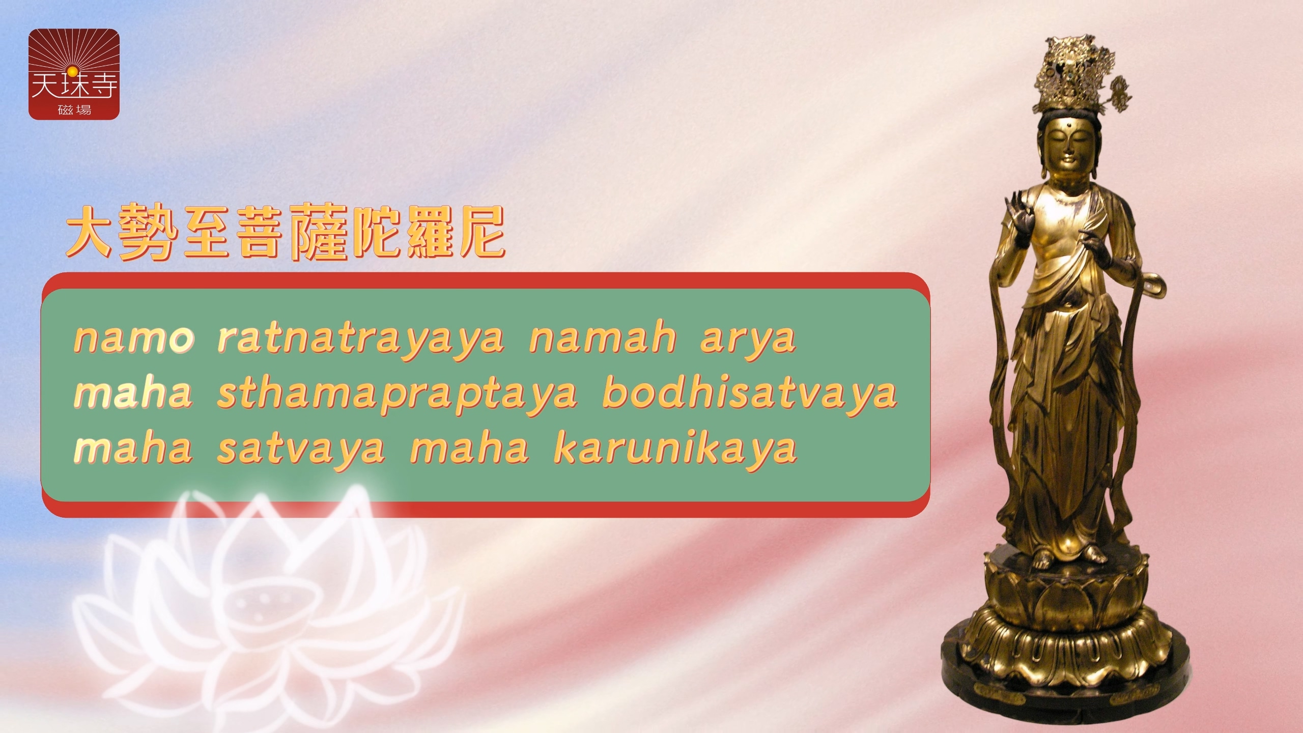 #大勢至菩薩陀羅尼 #Mahasthama prapta Bodhisattva dharani #大勢至菩薩 #陀羅尼 #大勢至菩薩咒語 #咒語 #西方三聖 #法界初祖 #八大菩薩