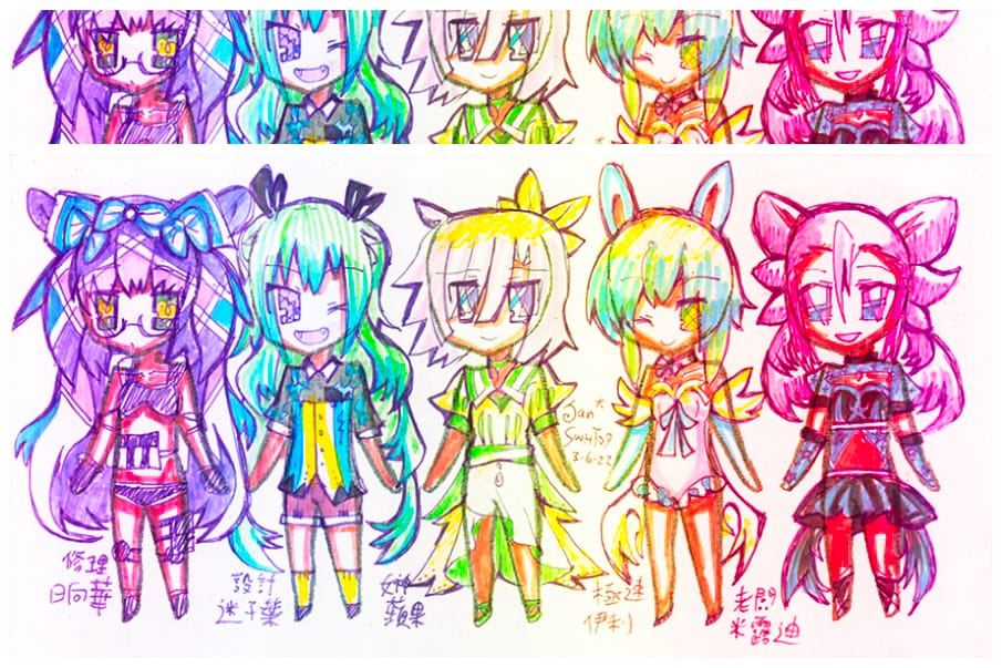 日復日的磨練,鍛鍊了她畫CG的顏色與角度。現在的Jan,往往三、四分鐘就能畫完一張草稿。朋友常說她畫畫時打燈、擺位、上色都好迅速,全是那時日子有功。直至現在工作開始忙碌,一日一畫的習慣未能夠維持,但Jan也會堅持每天即使不畫畫也會寫寫字,紀錄自己的心情。