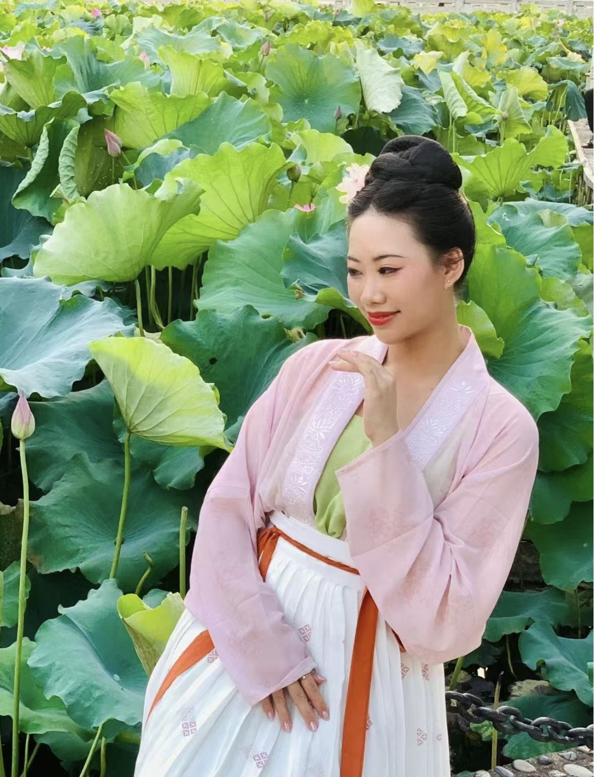 翁敏齡對中國歷史文化情有獨鍾,對中國傳統服飾和古詩詞着迷。「穿上宋朝的服裝,在廣西大學的荷塘邊拍寫真,仿佛穿越到古代,沉浸在『小荷才露露尖尖角』的詩意中;換上華麗的苗族服裝,漫步在貴州的古鎮,感覺自己就是個苗妹。」翁敏齡說。