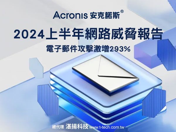 安克諾斯® Acronis 2024上半年網路威脅報告顯示 電子郵件攻擊激增293%,資料保護的重要性日與俱增