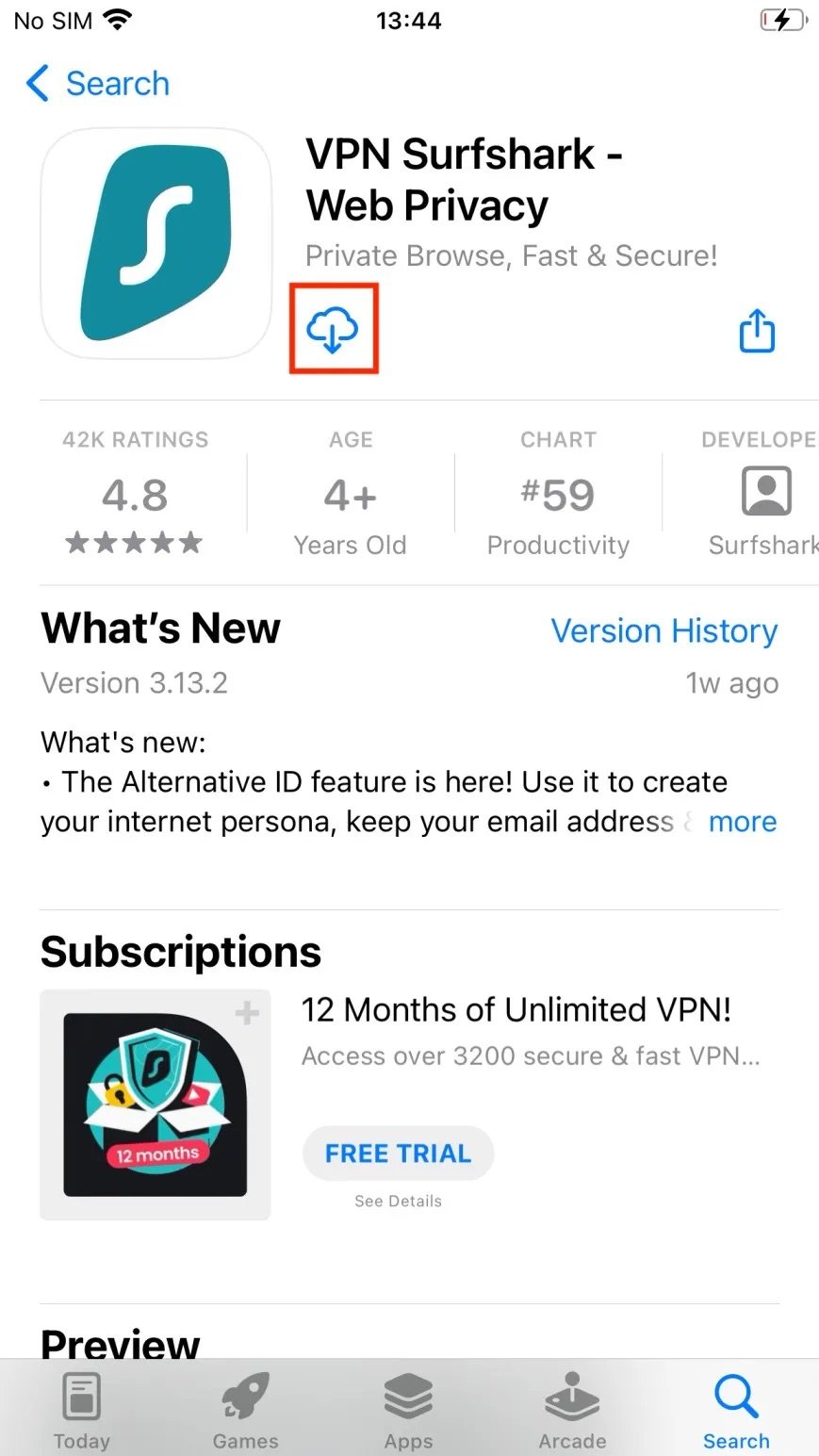 無論是iPhone或Android手機都可以在App Store上下載SurfShark VPN: