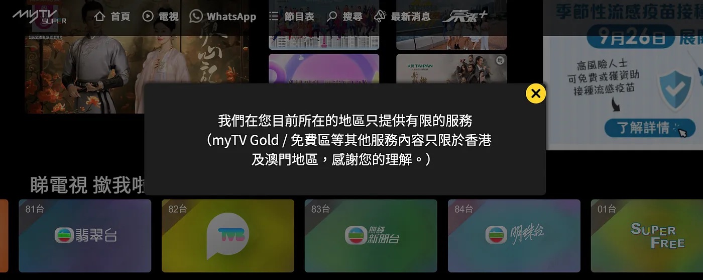 無論HOY TV、Viu TV和TVB都不允許在海外地區觀看其電視節目或直播,當他們辨别出閣下上網的伺服器不在香港的話,他們便不會提供服務。