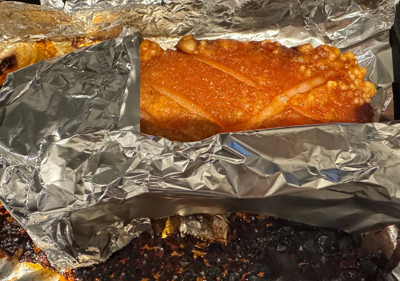 用錫紙遮蓋已爆的部份,避免燒焦