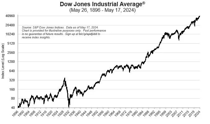 美國道瓊斯工業平均指數(道指)今天已超過 45,000 點,再創歷史新高。自 1896 年 5 月 26 日道指首次公佈以來,從當時的 40 點升至 128 年後的 45,000 點。儘管美股歷經多次股災,卻總能從谷底反彈,屢創新高,成為全球最具影響力的股價指數之一。
