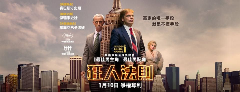 2025年1月10日在台上映美國電影《狂人法則》( The Apprentice)台灣官方正式預告︱美國上映慘遭打壓,台灣一刀未剪完整呈獻,影片引用自 https://www.youtube.com/watch?v=mbaCftdR3Tk&t=11s