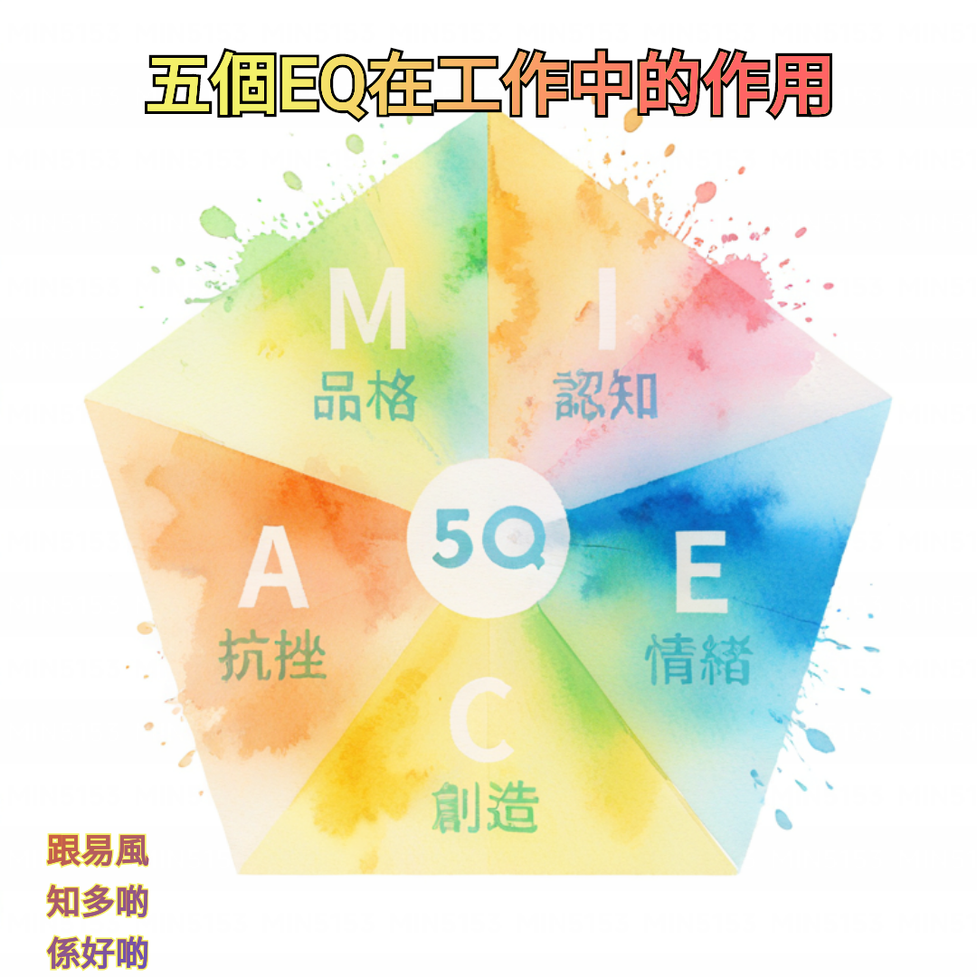 跟據李根興老師,前幾天的報導中,說明5Q,情緒智商(EQ)在工作中的重要性不亞於智商(IQ),它涵蓋自我認知、情緒管理、自我激勵、同理心和社交技能五個方面,能夠幫助你在職場中更好地應對 挑戰、提升效率並建立良好的人際關係。