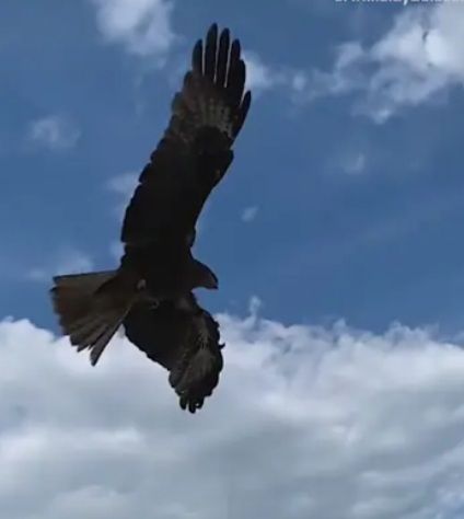終於有一天,怪鳥一飛沖天,盤旋天際,發出驚天長嘯,那時候群雞才發現那長相奇特的怪鳥,原來是一隻猛禽_鷹。