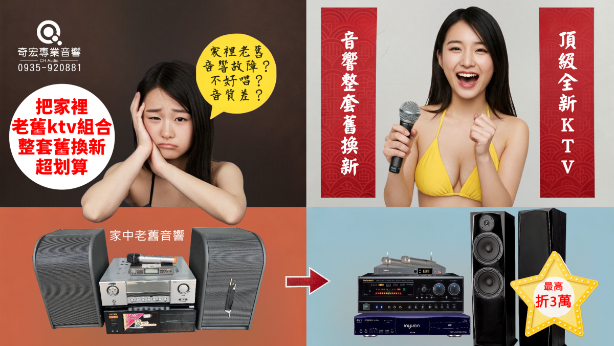 您家的点歌机是否已陪伴您多年,却开始出现卡顿、歌曲老旧等问题?新庄奇宏音响听到您的心声了!我们特别推出『整套旧点歌机套组,旧机换新机』的限时活动,让您轻松升级家庭KTV设备!
