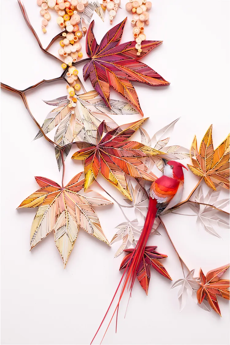 大自然是Yulia取之不尽的灵感来源,她创作了大量以各种花卉、蝴蝶、鱼类、羽毛、鸟类和其他自然图案为主题的作品,也尝试将自然图案与人脸结合起来,用人类的存在来加深作品的视觉体验、艺术品带来的感觉和情感冲击。她相信纸不仅仅是一种简单的媒介,对她来说,纸与人类有着更深层次的联系。一棵树,经过加工后变成了她手中的一张彩色纸,她依旧认为“纸给我的感觉是有生命的,是大自然的一部分。”