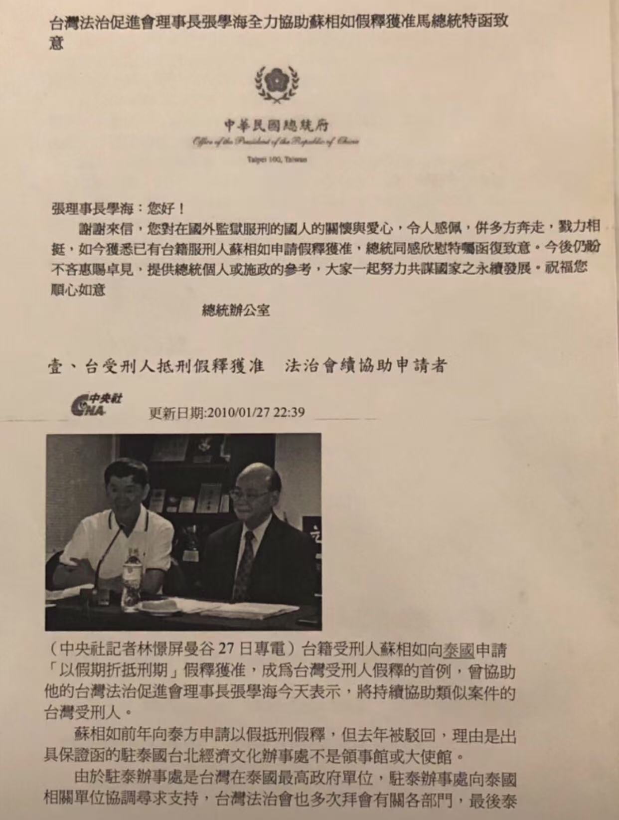 (泰國🇹🇭獄政廳長宋猜致贈該廳年報及獄政管理手册)
