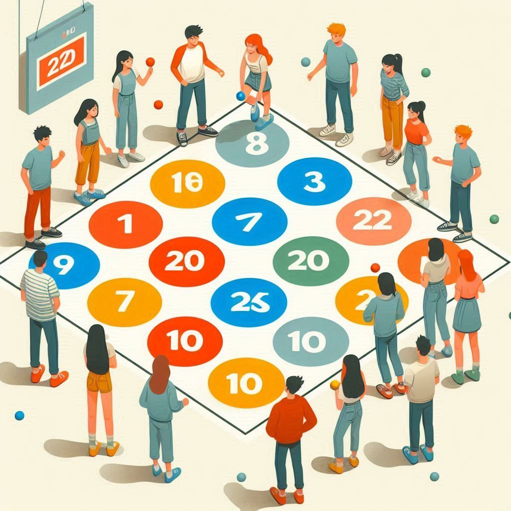 地面上放有不同顏色和數字的圓形,物料是軟膠,有點厚,很適合放在地上。