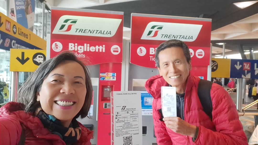 這個是在義大利拿不勒斯火車站,我們兩個人搶到了票,親自到機器去買票,我們要到蘇蓮多,這是一個重點城市,在台灣還買不到票,然後順便到它的樓上有餐廳,我們去真正吃拿坡里披薩,原來他們只有麵皮好吃,是老麵,可是放了一堆蕃茄醬,紅通通的,只有一點料而已,跟台灣差太多,還是我們台灣披薩好吃料多,味美,又便宜。