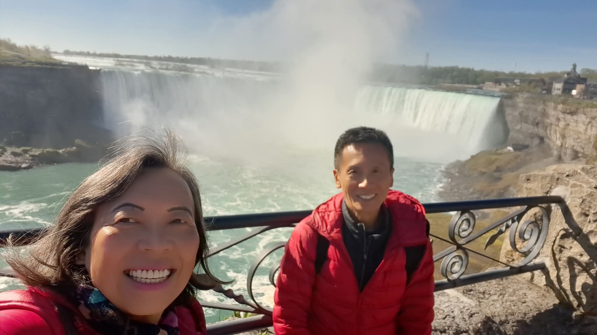 這裡是尼亞加拉大瀑布,它在加拿大排名世界第三位,我們這次加拿大住的地方,走路就可以看到大瀑布,我們一邊散步,一邊運動,走半小時即可,雖然看過三次大瀑布,都是白天,晚上有燈光秀只是太晚了,我們就沒有去,它會有藍色的燈光,紅色的燈光。我們還是喜歡白天的氣氛,藍天白雲搭配大瀑布的聲音,越靠近越大聲,覺得澎湃洶湧。很特別的感覺。