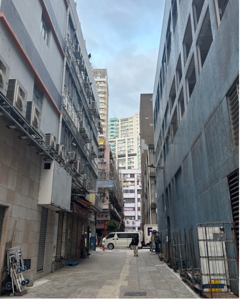 那裏聚集了一堆工廠大廈。下車後,除了巴士站的站頂外,完全沒有遮掩,正前面的就是我上班的大廈,但要經過一條有一所小食店的小路,才可繞到正門。記得太陽很大,幸好是冬天,所以陽光是溫熱的,走過那條小路時習慣看看小食店有沒有營業,也習慣抬頭看看被兩旁大廈壓得緊緊的天空,感覺天空很高,容得下的卻很少。可以瞇著眼舉頭觀天的日子,便是好日子。偶爾大廈外置的冷氣會滴水,我在想為什麼冬天要開冷氣,醒覺裏面有些間隔的單位沒有窗,所以即使不幸被滴到眼球,只趕緊眨眼,用紙巾擦拭,不致於煩躁,總覺得這些水份比淚水還要悲傷。