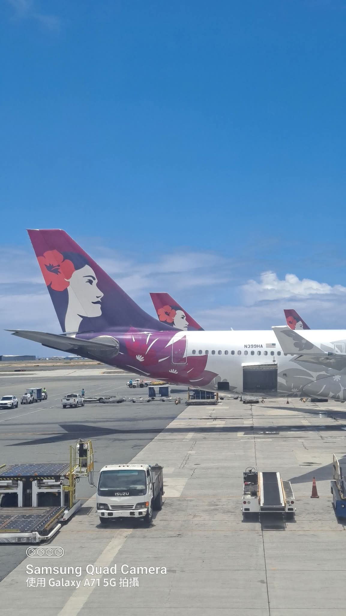 看到了這個飛機,就知道我們在夏威夷了,其實說真的,當時沒來時抱有很大的美麗想法,可以看到美景,可以看到浪漫的風情。結果看到了很多日本人,很多日本超商,就這樣。不過唯一很棒的就是他們的飯店就直通海灘,大家都可以自由進出,很友善,很方便。我們因為是住附有廚房,又兩個房間,所以不是大飯店。剛好他們大飯店可以去逛逛,去看看,所以感受不錯。不過應該是不會再去了! 它也是海島,跟我們台灣很像喔!我們要珍惜台灣美景,台灣是寶島,不輸夏威夷,物價又便宜,真棒!