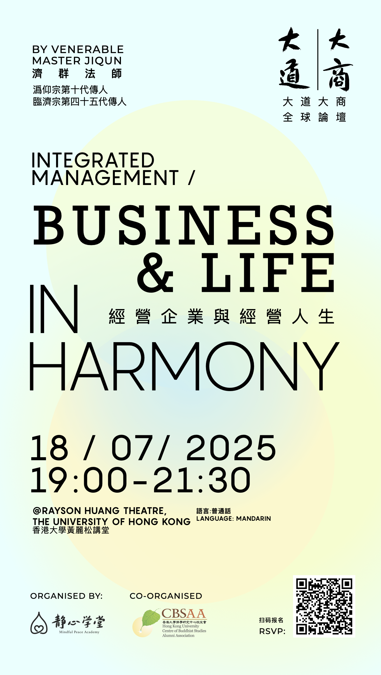 感恩師兄們,讓宛達有這個因緣,入班靜心學堂大道大商的香港企業家種子班,更能有今夜的福報在香港大學聽溈仰宗第十代傳人及臨濟宗第四十五代傳人濟群法師的經營企業與經營人生課。
