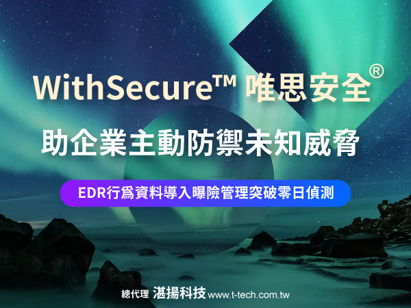 湛揚科技是WithSecure™唯思安全®台灣總代理,將此項技術整合至WithSecure™ Elements的雲端服務中,協助客戶建立更強韌的資安防線。湛揚科技始終以客戶為核心,我們提供專業顧問諮詢、免費試用體驗以及完整的技術支援,協助企業安心導入新一代資安防護。想了解更多WithSecure™唯思安全®的產品資訊,請瀏覽湛揚科技官網https://www.t-tech.com.tw或來電02-25151585,我們將竭誠為您提供符合需求的高性價比資安解決方案。