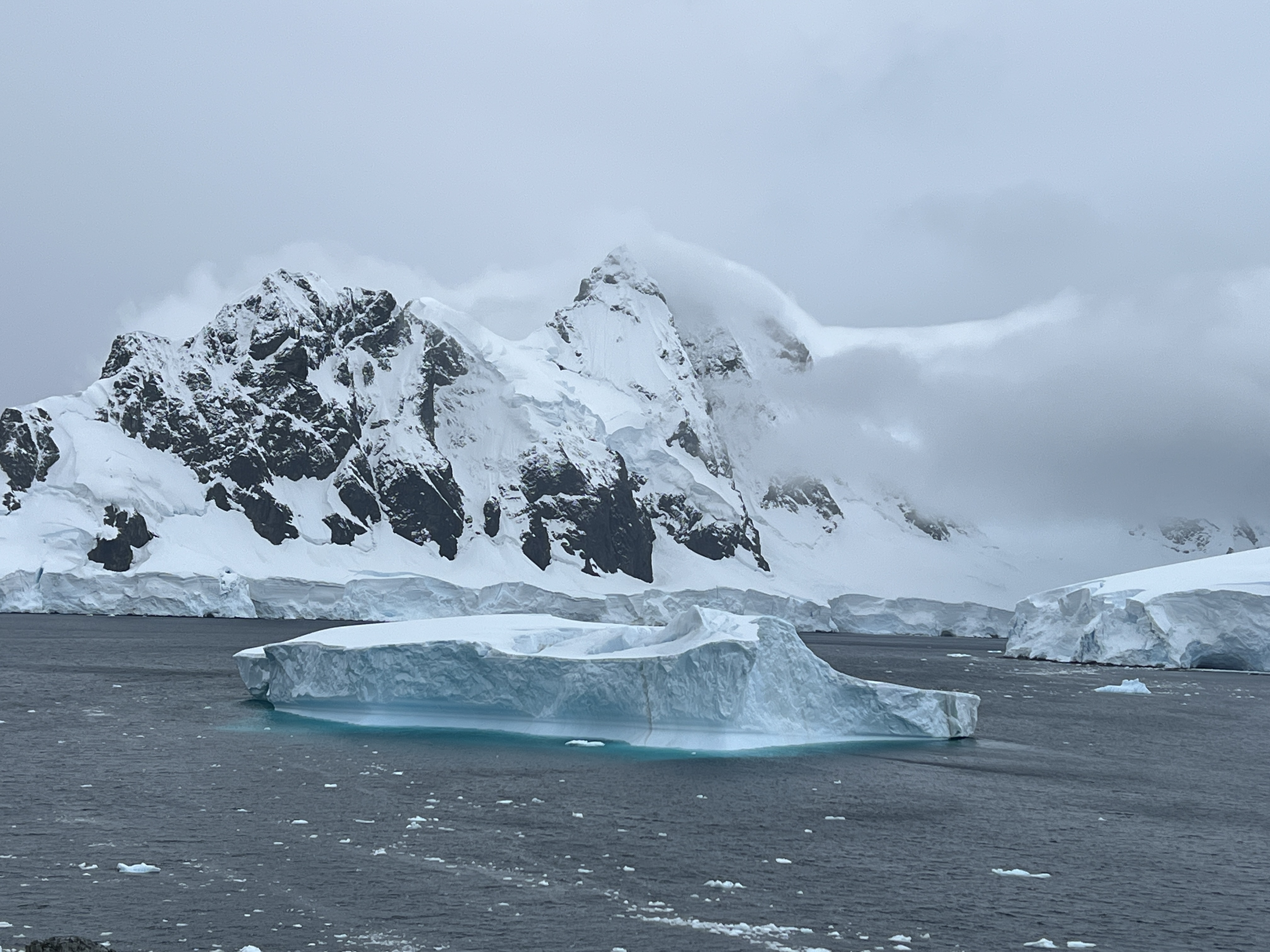 首先迎接我們的,不是連綿的雪山,而是一座座漂浮的冰山。以往只能在國家地理頻道中才看得見的奇景,此刻竟毫無預警地、巨大而真實地佔據了我的視野。我還記得當刻是起床後,即時拉開窗簾看到的瞬間,我的淚水頓時模糊了雙眼,我相信這一生都不會忘記初見冰山時那份直擊靈魂的撼動。它像一座精心雕琢的藝術品,靜靜地坐在湛藍的海洋上。在那一刻,我只是站在露台上,任憑南極的風吹拂著,心中充滿了無盡的讚嘆與感恩,久久無法言語。