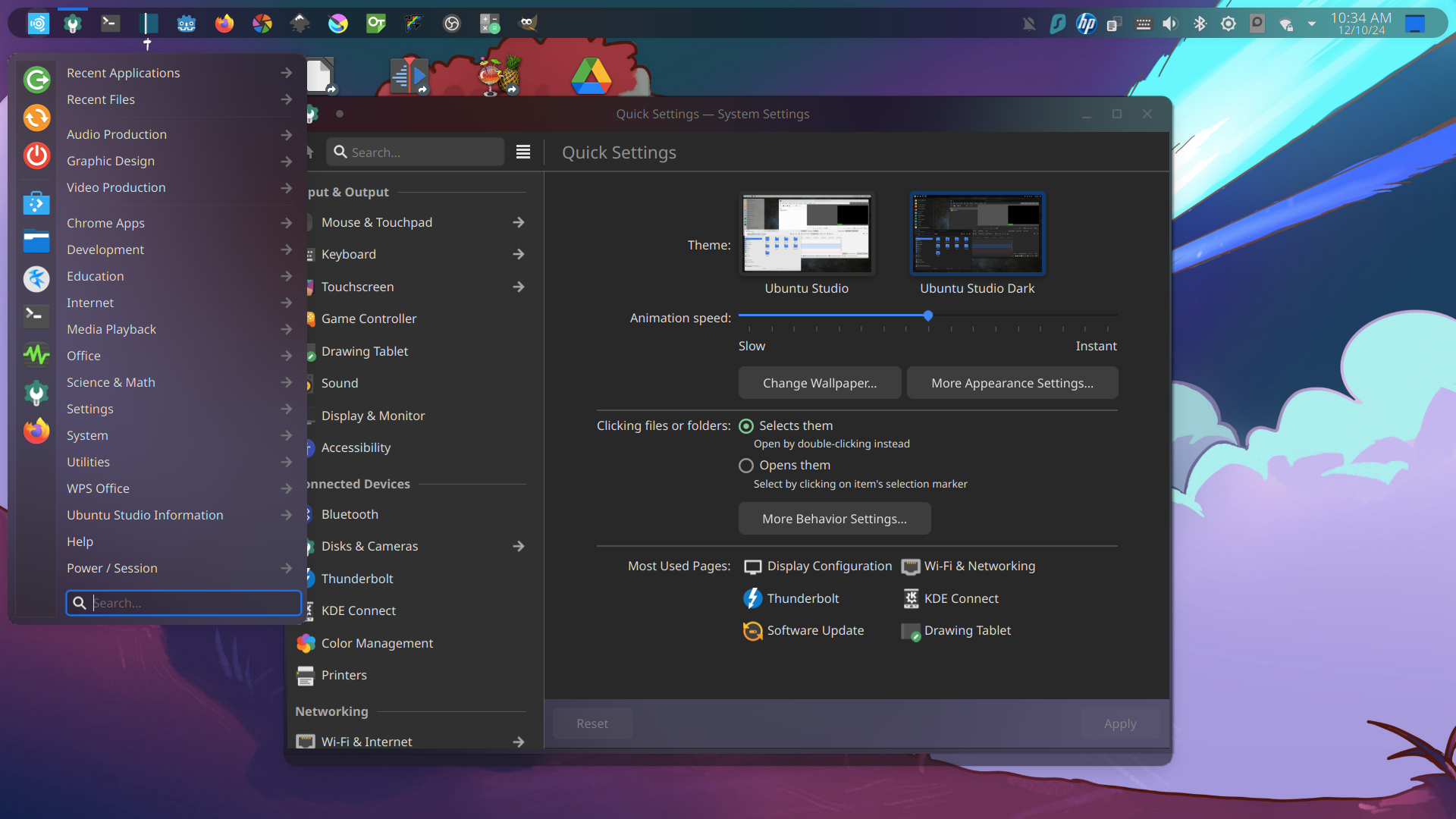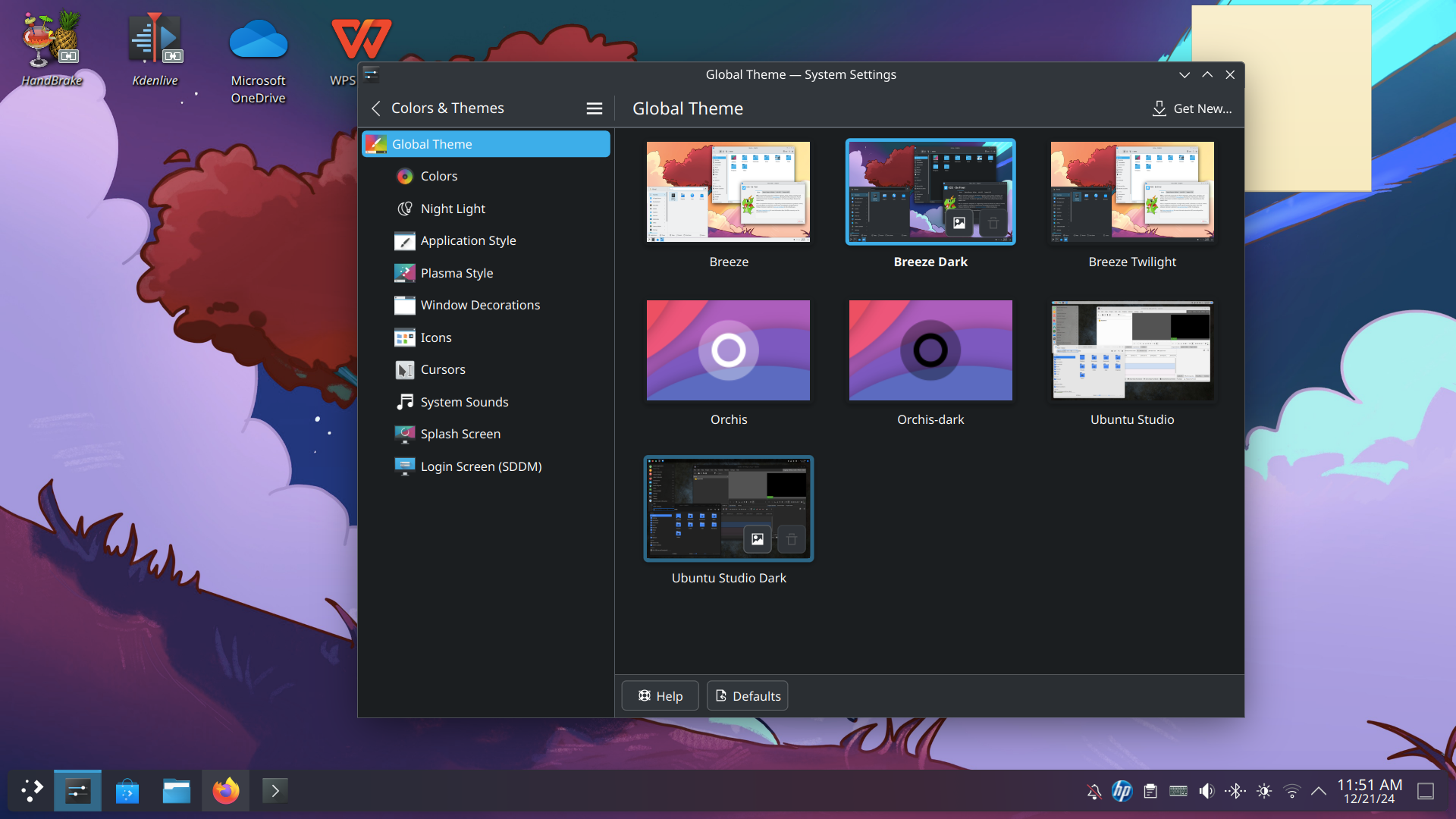 先進入「系統設定」System Setting,見到有一大堆嘢可以設定,今次我就去改另一個介面同背景圖片,點選「外觀」Appearance & Style→Color and Theme,內置三款系統介面,分光同暗;選擇Breeze Dark,佈局比較接近Window,方便Window使用者過底。另外Linux提供大量系統外觀下載,不過官話就話有機會帶來不穩定。