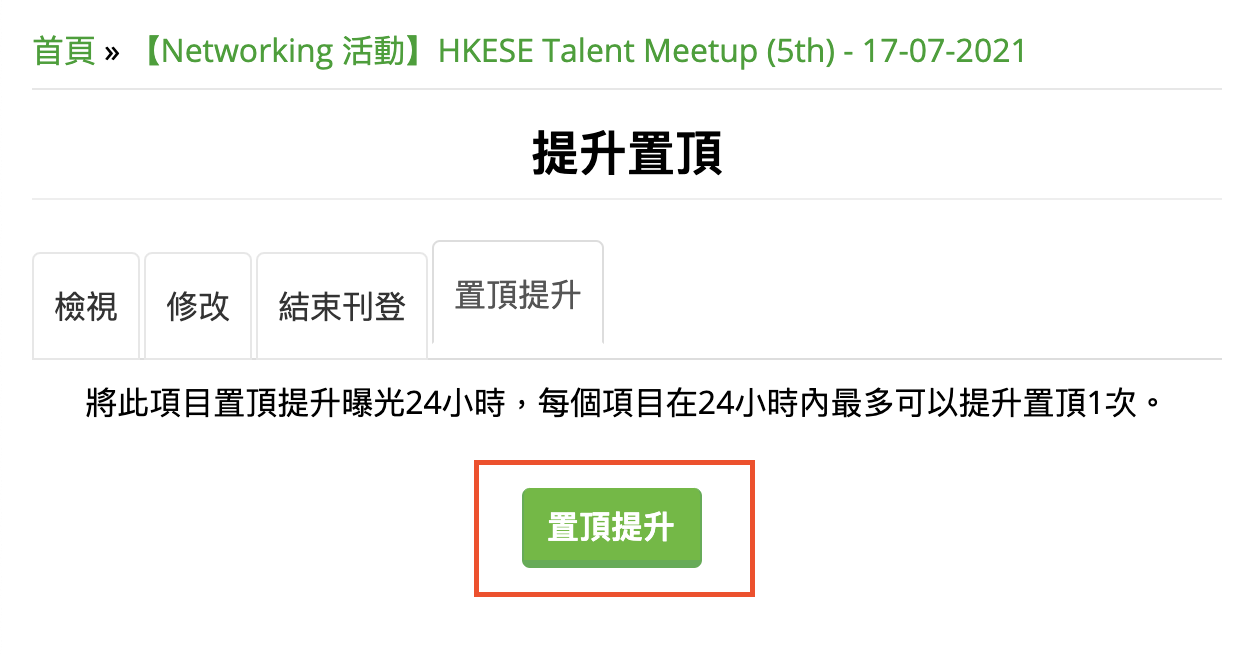 現在,你可以使用提升置頂功能,將你的專才項目提升至平台最優先位置展示,大幅提升專才項目的曝光瀏覽。 提升置頂效果展示24小時,每個項目在24小時內最多可以提升置頂1次,你可以重覆將項目提升置頂。 管理刊登中的專才項目 在市集刊登新的專才項目