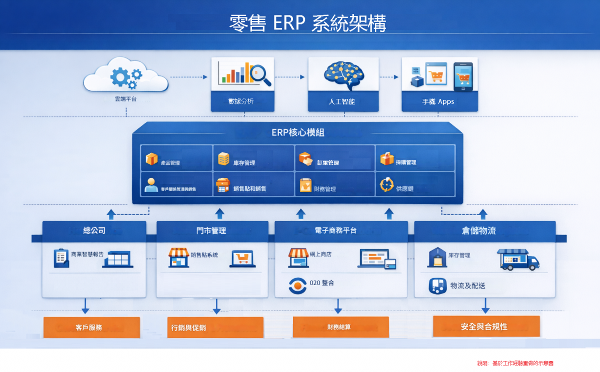 上述內容為本人就零售業 ERP 系統所設計及繪製的系統架構圖