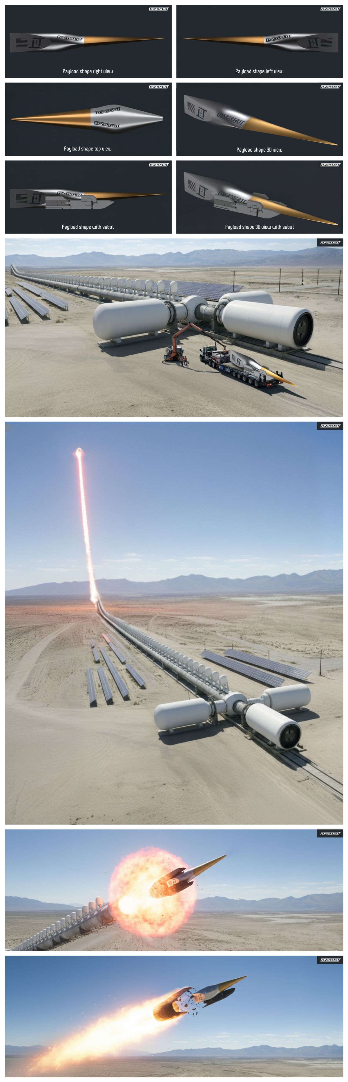 At Longshot (http://www.longshotspace.com) we make a "light gas gun" that is the world's biggest cannon to send payloads to space and accross the world. It works by making a 6 mile/10 km long steel barrell, about 10 meter accross (1000-1 length to diameter ratio) with about 100 "injections" points along side (or on top of) it where hot gas is injected to "push" the payload - so think just a very long barrel with a bunch of gas-tanks on top. What comes out at the end is basically a sort of space plane with a payload inside.