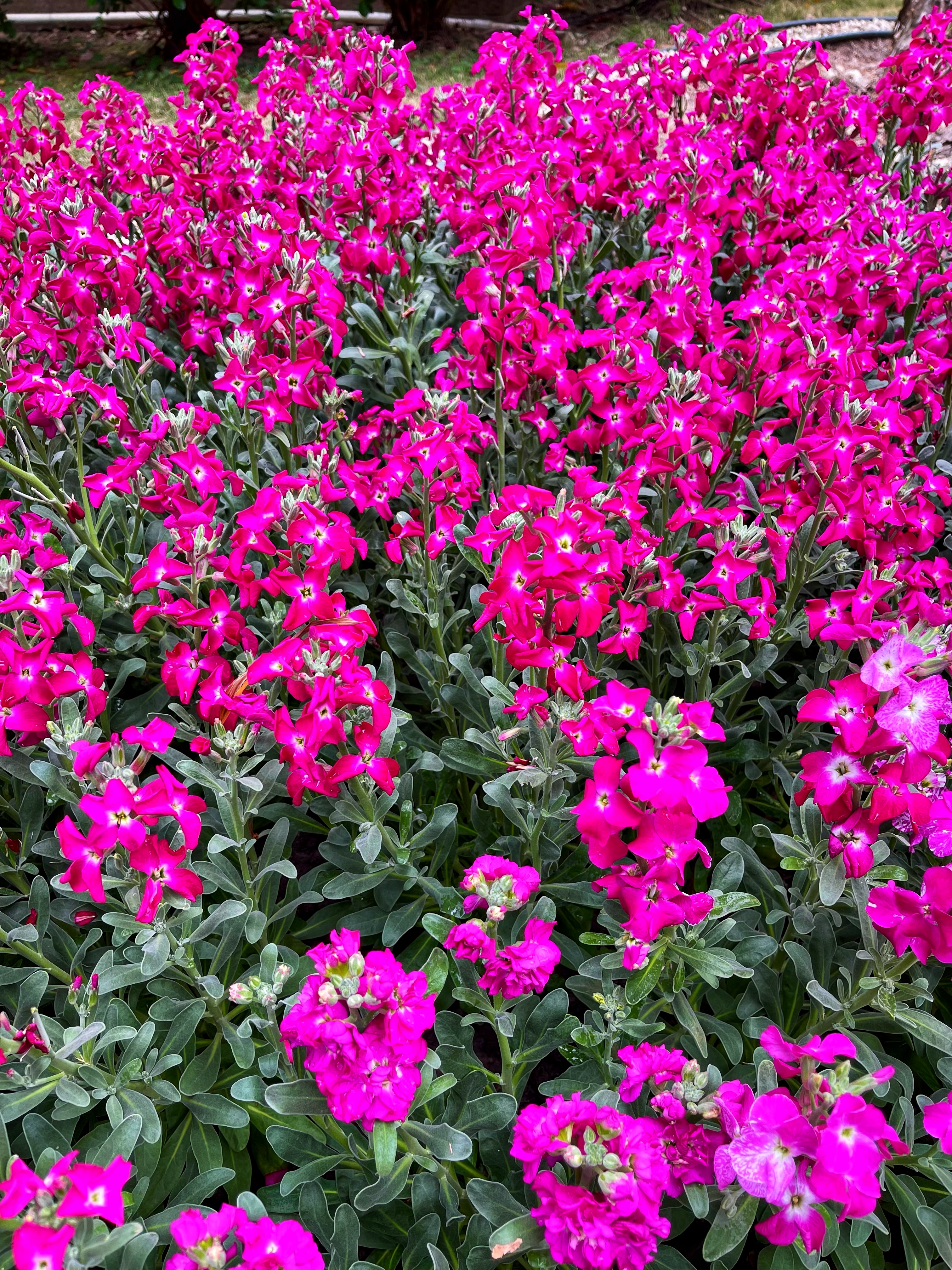 大厦門前的紫羅蘭鮮豔得