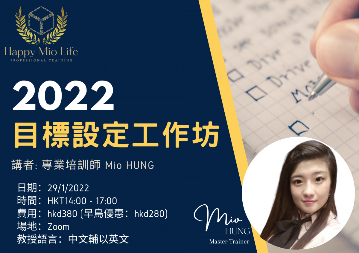 【目標設定工作坊!】訂立屬於你自己的2022新目標 兼 教你有效率回顧2021年!| 想升職加薪做老闆 定 成績提升入理想學校 實現夢想 --心理學及社工雙專業 生命教育培訓師 Mio HUNG(Happy Mio Life)