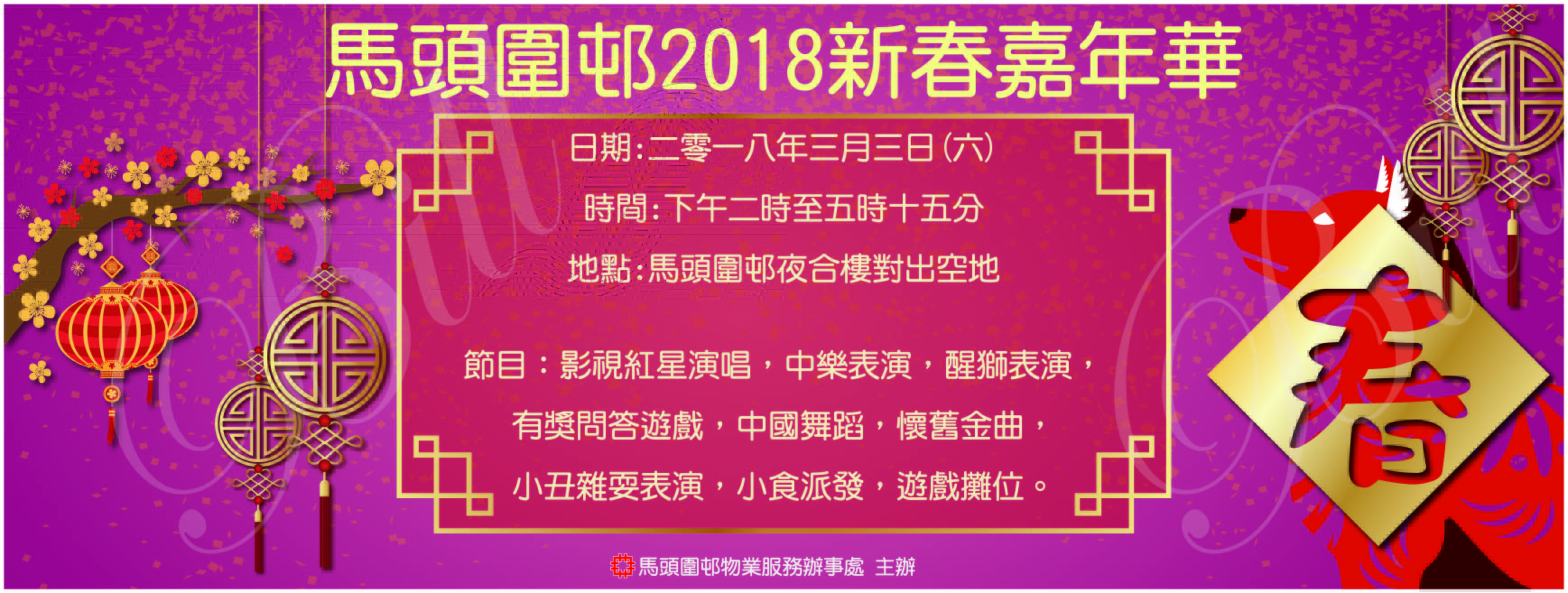 為屋邨舉辦慶祝農曆新年的嘉年華, 為了家中老少及配合節日氣氛, 宣傳手段不可或缺, banner及宣傳單張, 可以令更多人知道, 從而吸引更多人前來, 多人一起熱鬧過新年。活動所需要的紀念狀及嘉賓名牌(含個人資料不便外傳)。