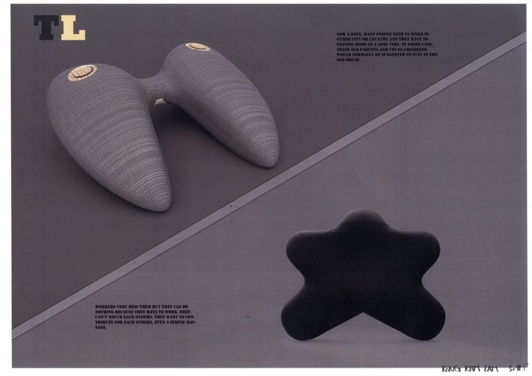 For people to increase each family time. TL is a new product to let people could perform their filial piety. Even you are living in oversea, you could also massage for your parents or the person you love. TL is a creative new product, it used a new technology to let people have a touch feeling through internet and TV screen. While you are video chating with your target, you could also enjoy his/her massage, closer to each others distance.