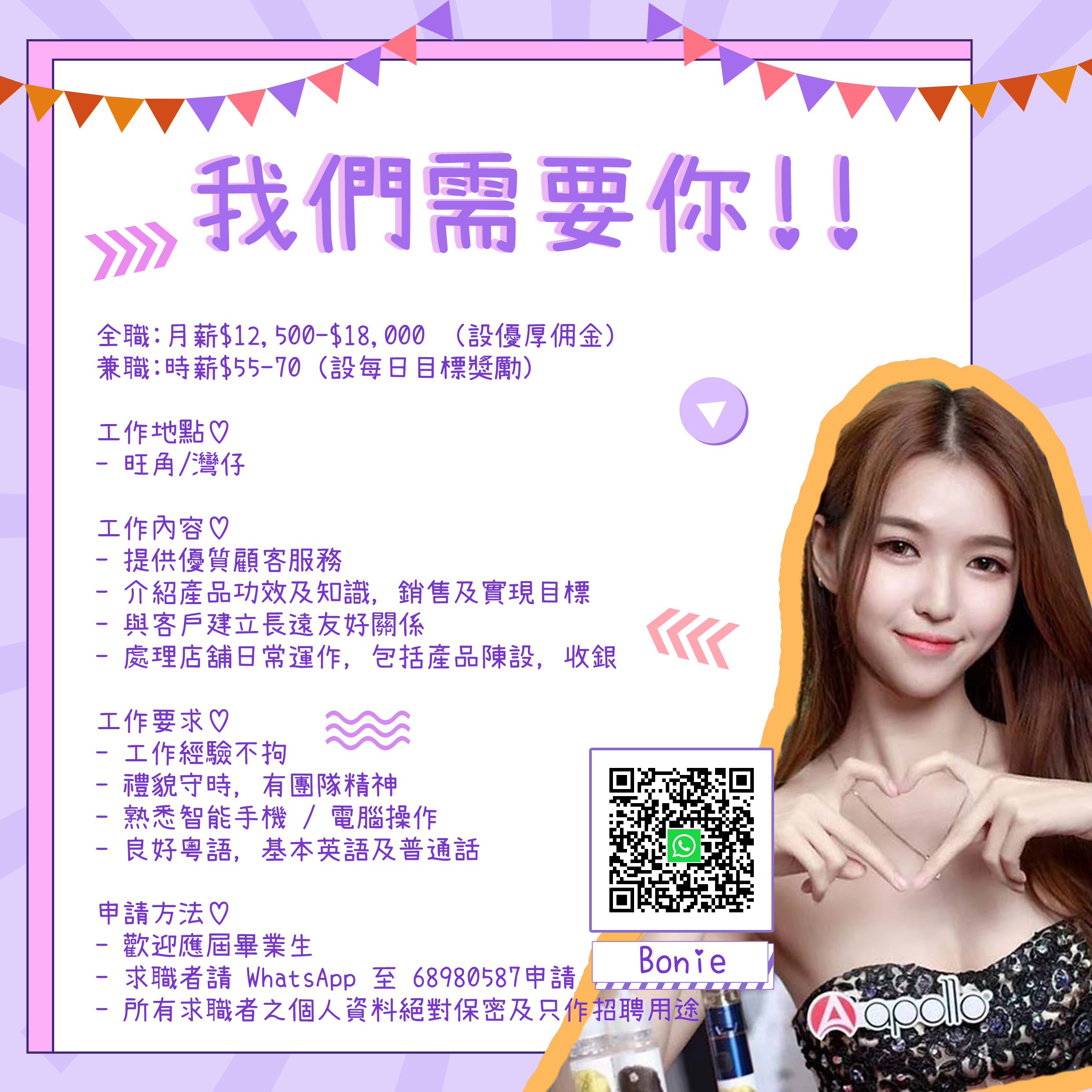 - 歡迎應屆畢業生;求職者請 WhatsApp 至 68980587 申請 (Bonie)