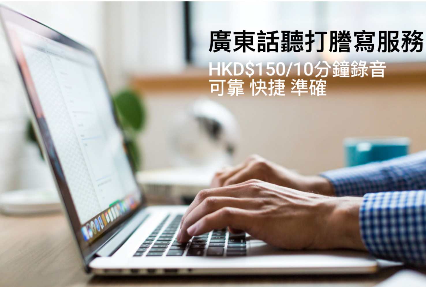 快速中文輸入,廣東話聽打謄寫服務,$150/10分鐘錄音,可免費修改一次。如需再次修改,收費為$200/一次。