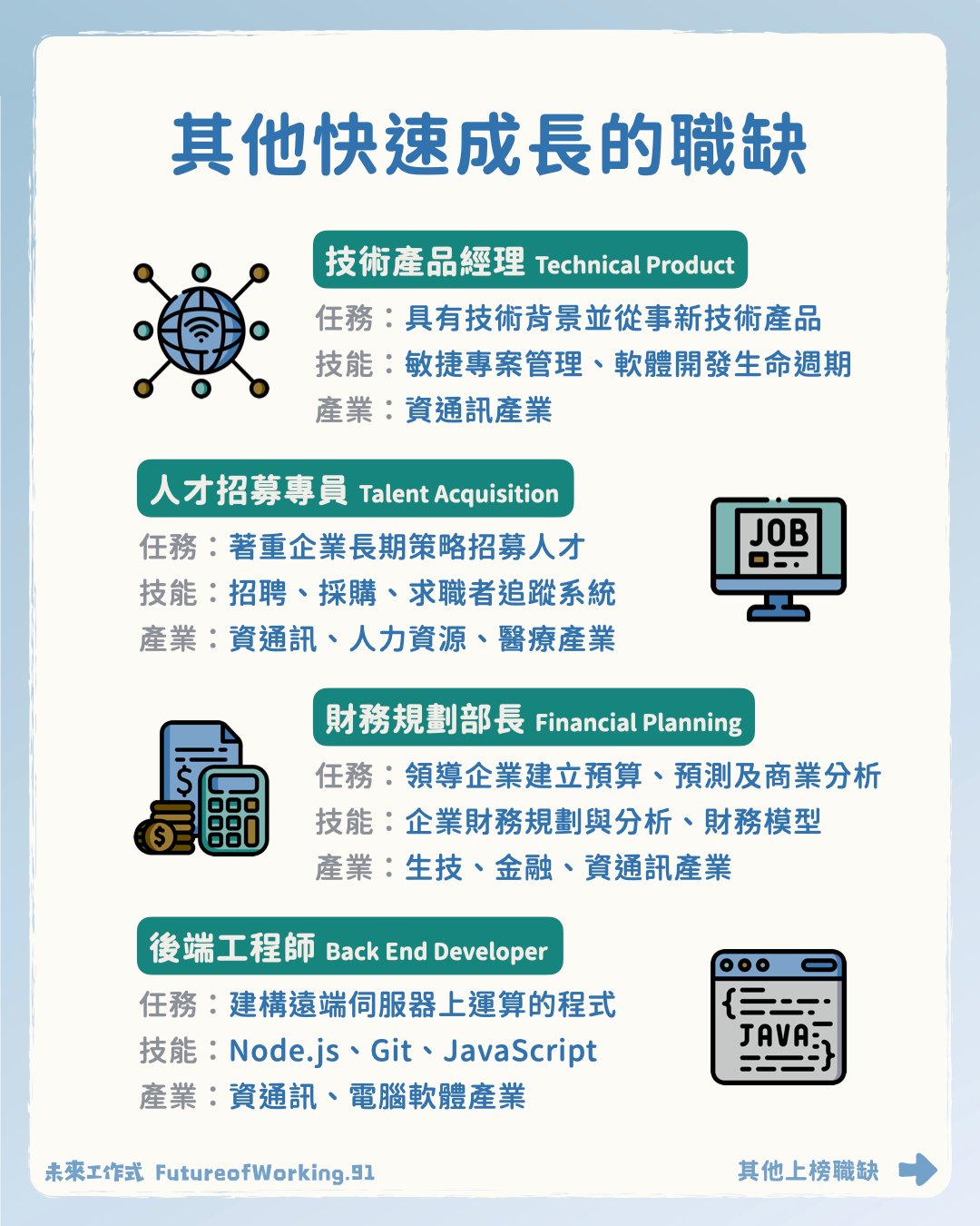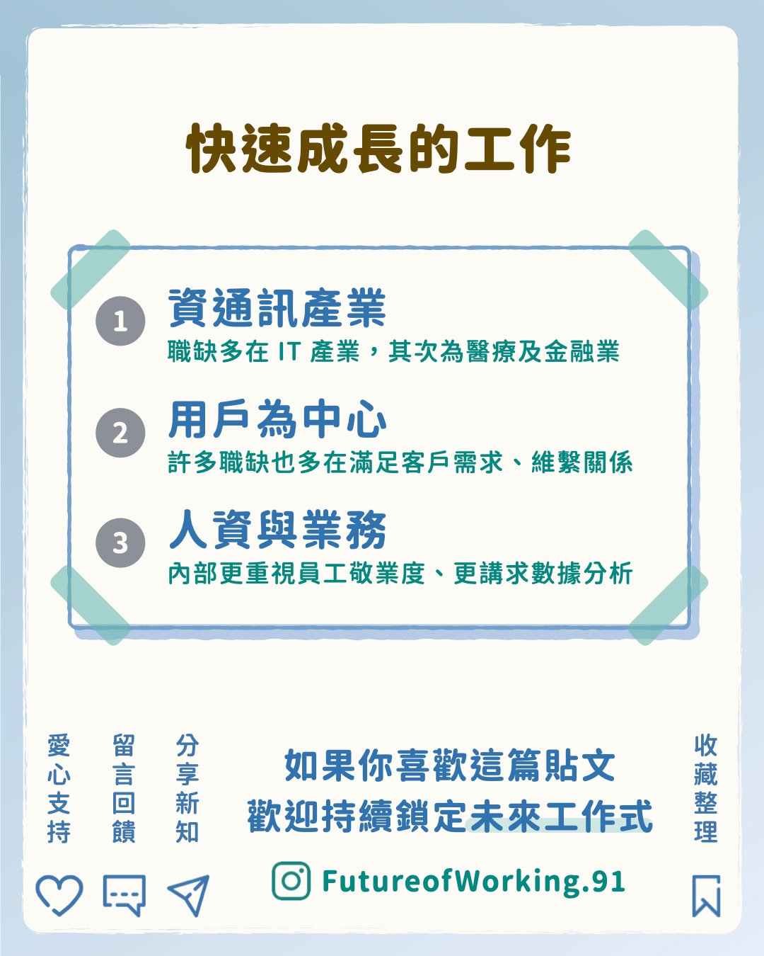 如果對這方面的資訊有興趣的話,歡迎到 IG 搜尋 @FutureofWorking.91 #未來工作式