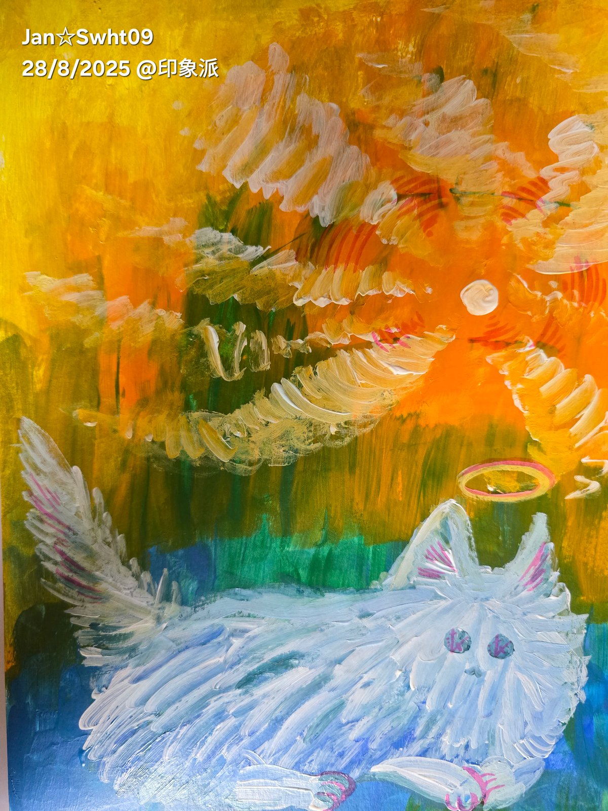 而構思是,某太太的老公在他死亡後,發覺老公還在身邊照顧她,好感動。這是同學的貓咪,看著我同學☆☆☆