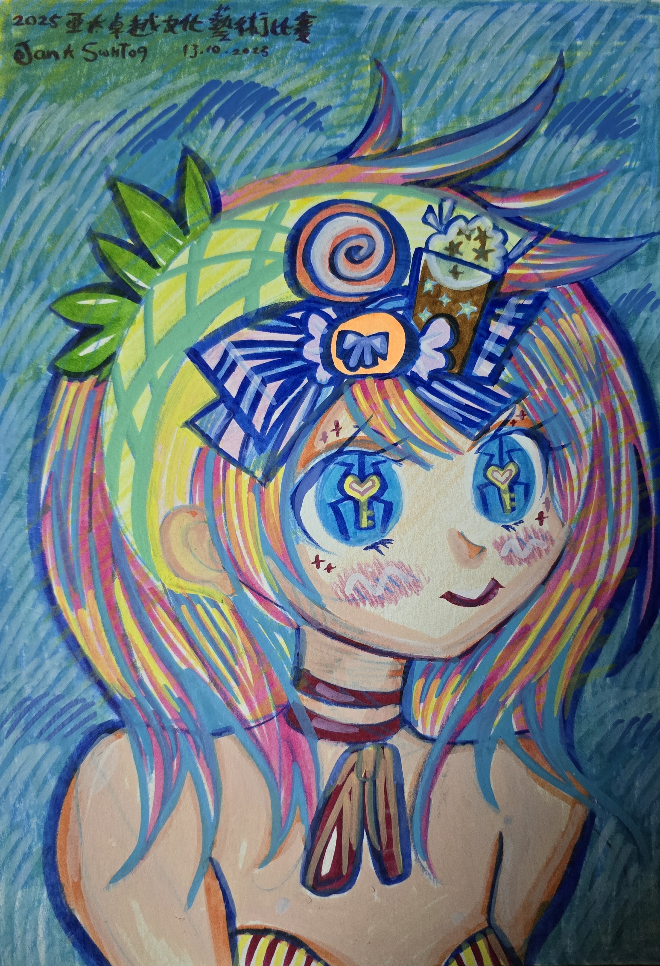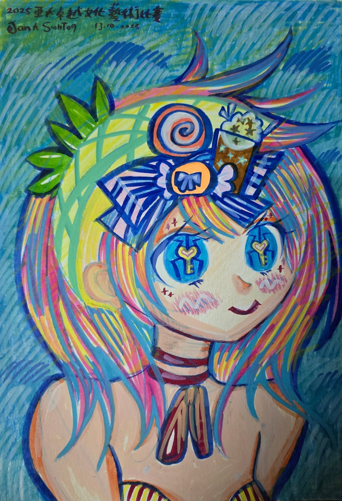 這是喜歡糖果的女生,菠蘿般的王冠,昨日食了平時唔食的菠蘿包,超美味(小皇子冰室)喜歡了這店子,特別畫了幅圖做記錄🤣