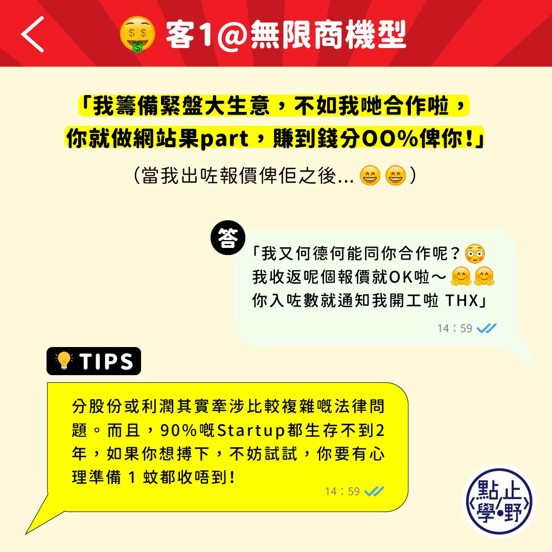 點止學嘢今個月26號將會搞個有關從事網頁freelance接案嘅免費網上講座,想避免落入接Job陷阱﹑想知面對權益糾紛時可以點樣處理嘅朋友,可以點擊留言連結了解講座詳情,或者直接透過WhatsApp報名啦!