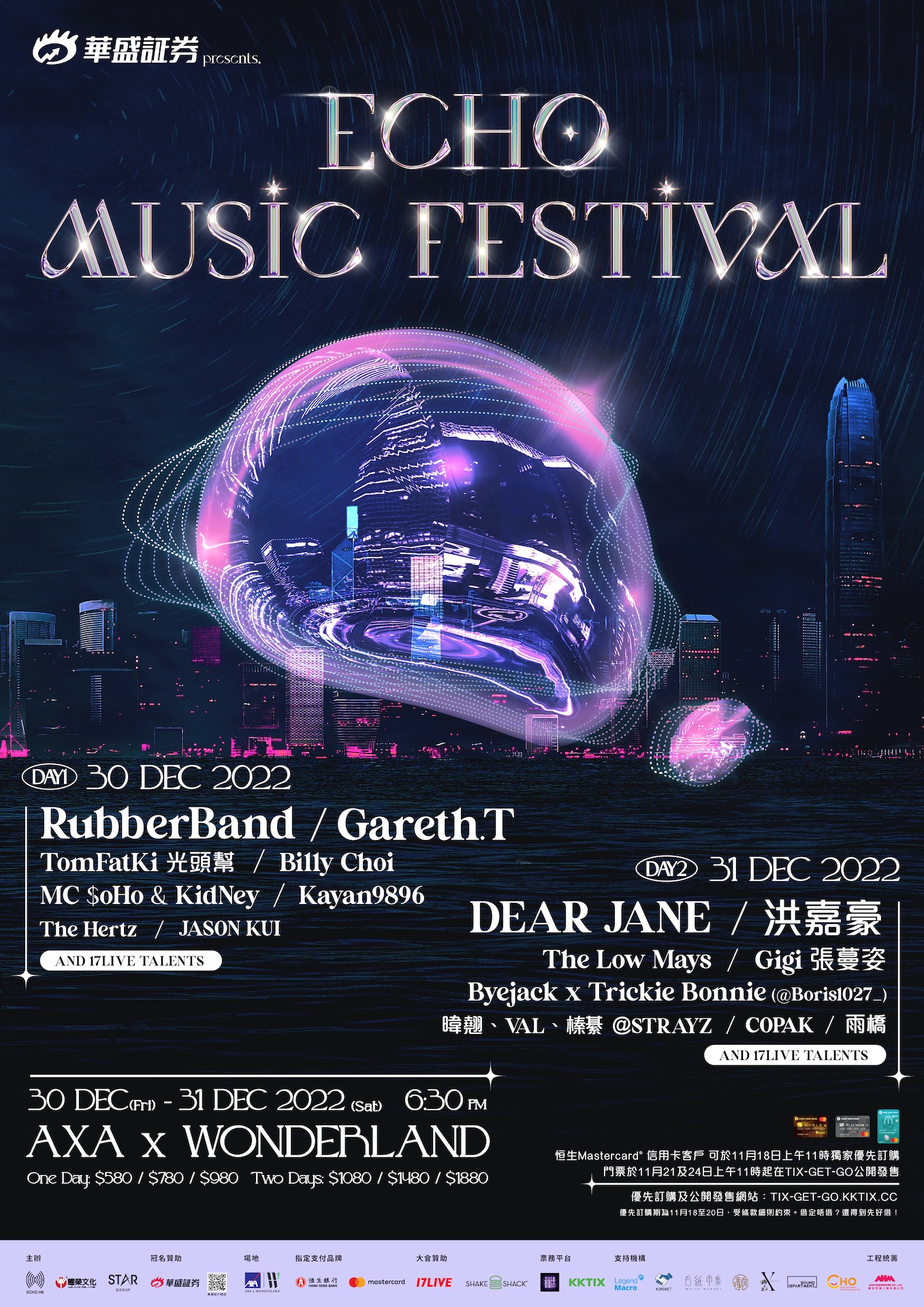 《華盛証券呈獻: ECHO MUSIC FESTIVAL》將於12月30至31日假AXA x Wonderland安盛 x 竹翠公園舉行,成為本年度最後一個戶外大型音樂節。100%本地音樂人陣容,為香港樂迷提供一個最本地、最個人化的難忘體驗,一同回顧2022,一同迎接2023!詳情如下: