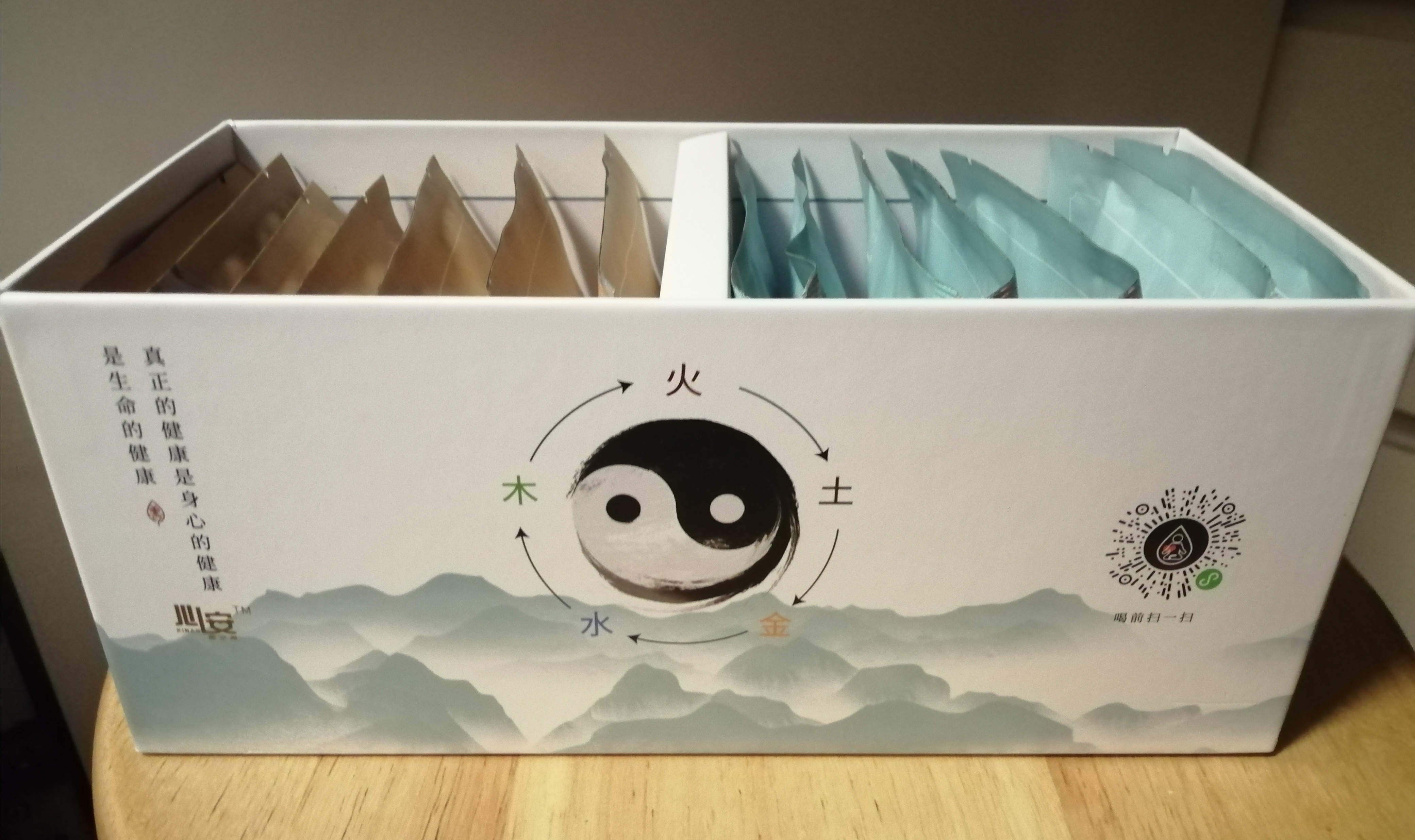 內有14包,張藍色及杏色包撕開,內有桑黃及紅棗,黃精,甘草放入1300-1500水,煲滾後全家可以飲用。
