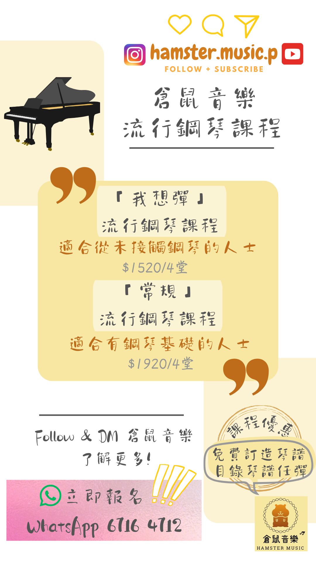 ✏️「我想彈」及常規課程:免費度身訂造琴譜❗️