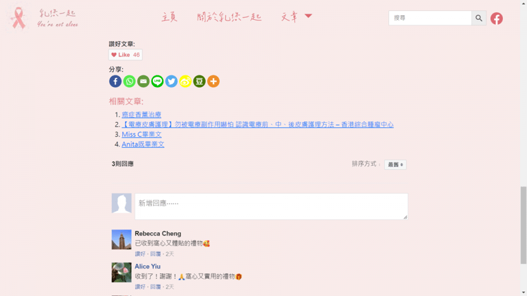 在內文中,也加上了點讚按鈕和留言區,讓姊妹們也能夠與文章和其他姊妹互動。