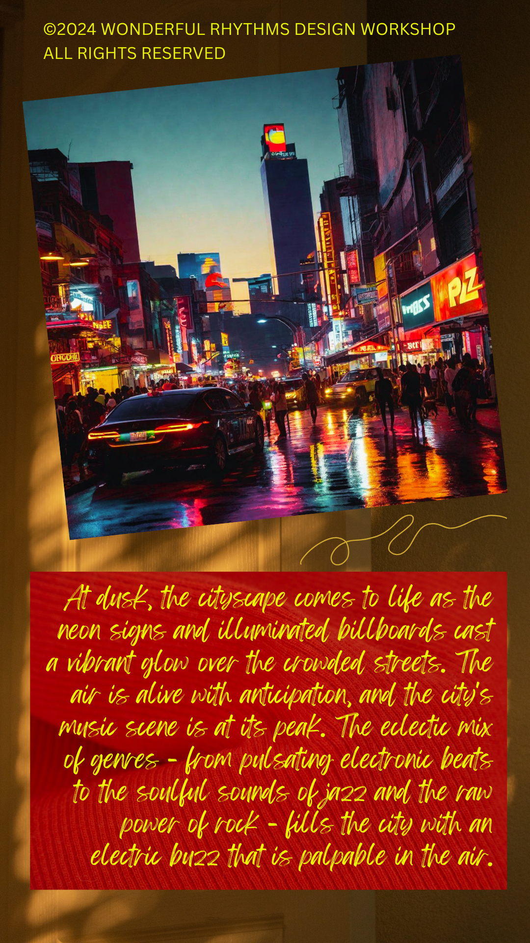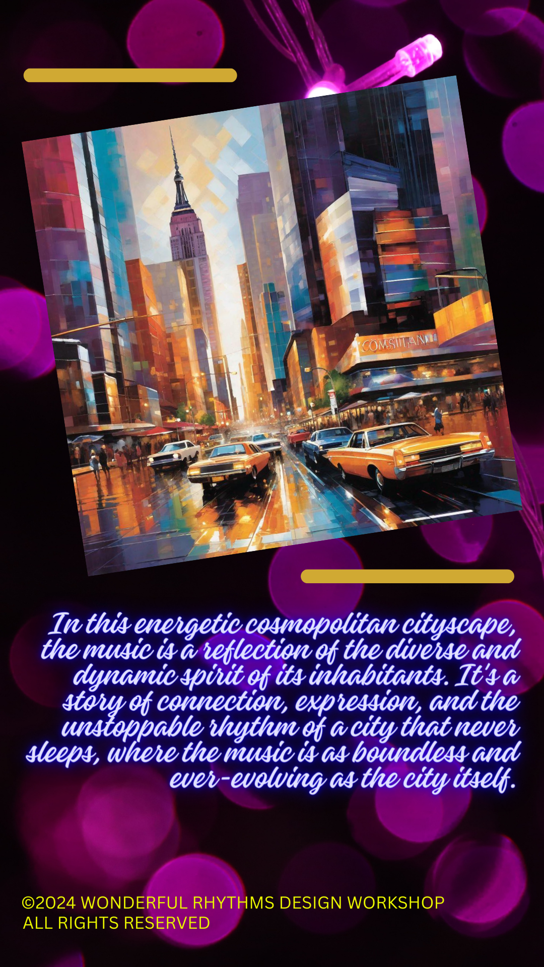 Music Story Arts Design of Energetic Cosmopolitan Cityscape