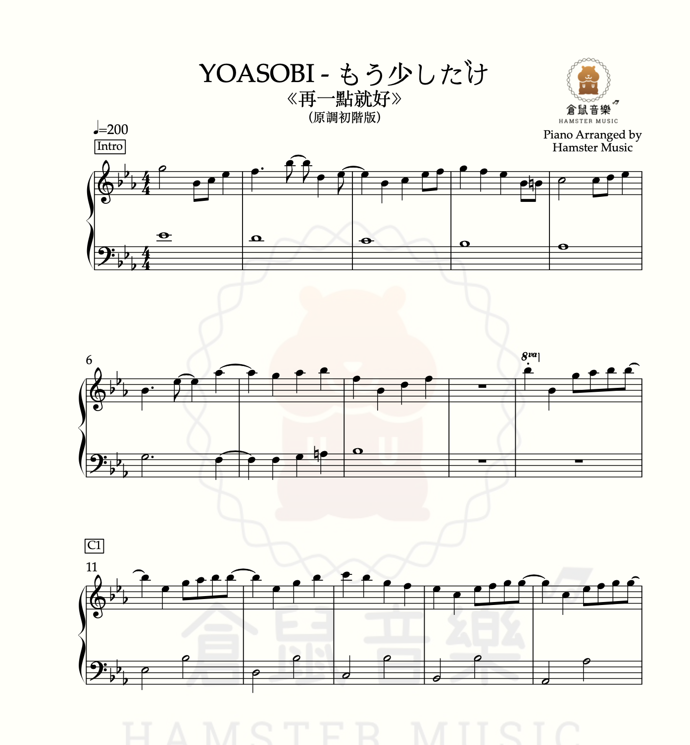 [可訂造琴譜]YOASOBI - もう少しだけ(再一點就好)