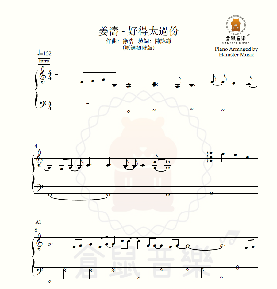 [可訂造琴譜]姜濤 - 好得太過份(原調初階版)