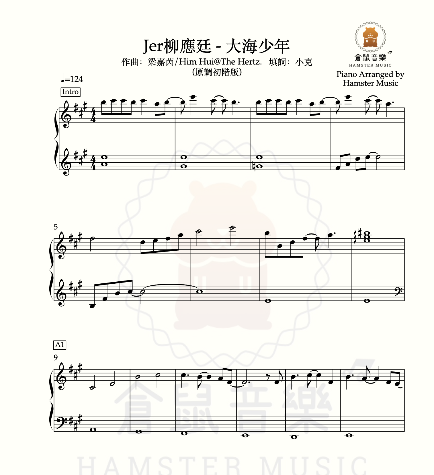 [可訂造琴譜]Jer柳應廷 - 大海少年(原調初階版)