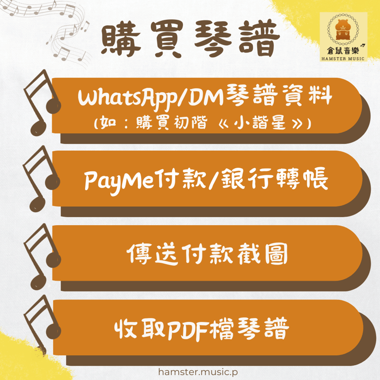 💰 Payme/銀行轉帳付款,電郵收取琴譜(PDF檔)