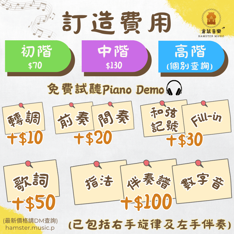 🐹報讀流行鋼琴課程,可獲免費度身訂造琴譜!🐹
