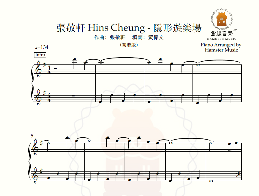 [可訂造琴譜] 張敬軒 - 隱形遊樂場(原調初階版)