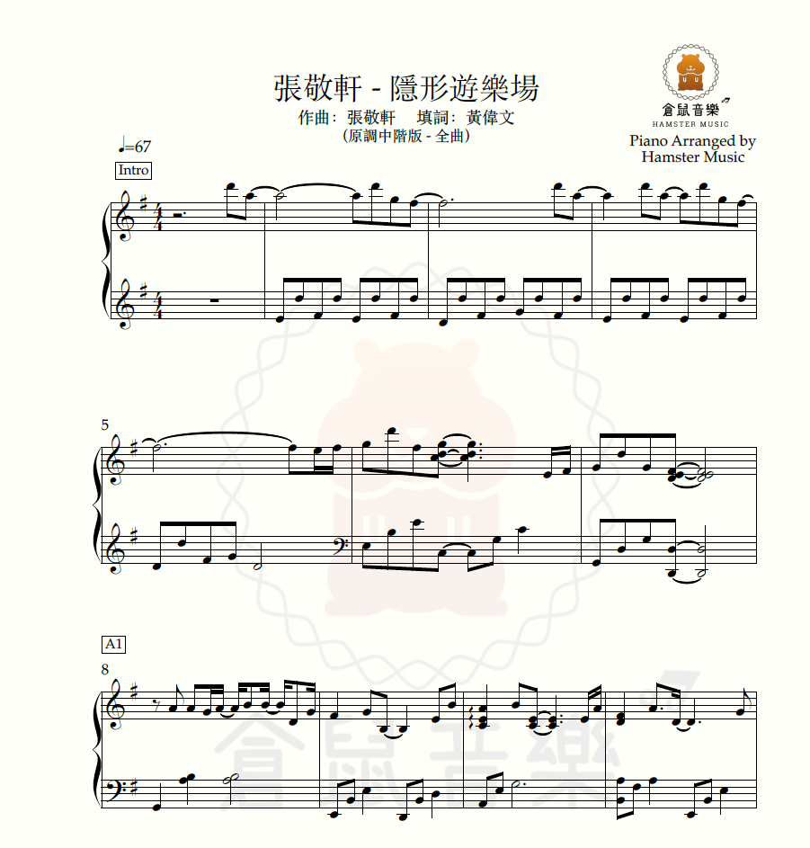[可訂造琴譜]張敬軒 - 隱形遊樂場(原調中階版)